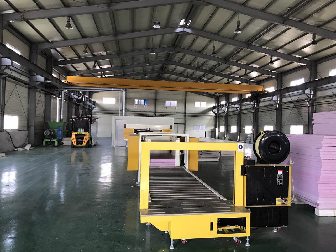 產品主打二氧化碳(CO2)擠塑板生產線、改性聚苯板生產線等發(fā)泡設備,及相關回收機、自動切割、自動打標、自動打包等相關輔機。